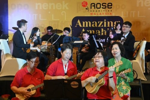 这项由玫瑰慈善团体(ROSE Charities Malaysia)举办的别开生面活动,今午在槟城温布利圣吉尔斯酒店(St.Giles Wembley Hotel)热烈上演,约400人参与其盛,除了引起全场欢呼的阿嫲走猫步,还有管弦乐队演奏、娘惹舞蹈等,节目丰富。