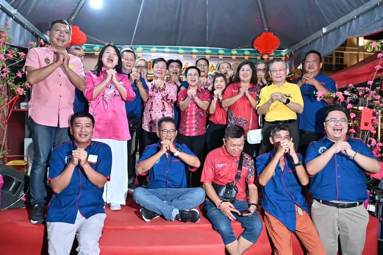 图说:曹观友、多位行政议员与州议员,以及红灯角填地居民协会成员,祝大家马年行大运!