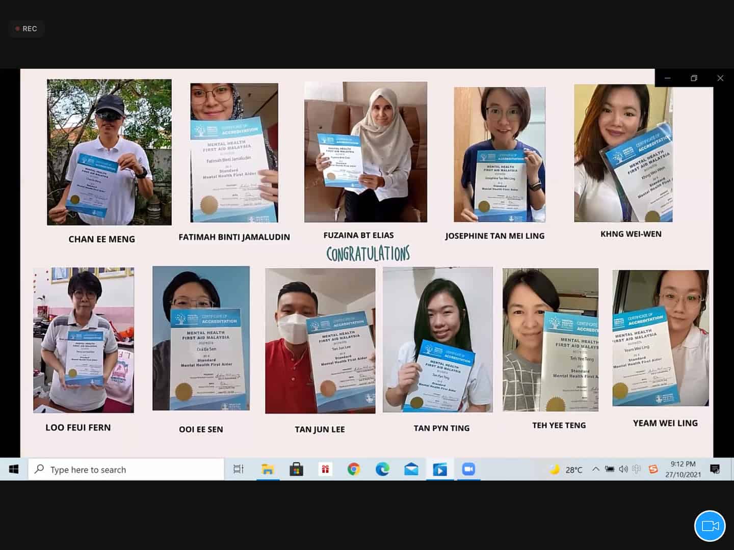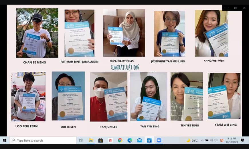 槟州政府透过槟城关怀联盟,与大马心理健康协会举办了“2021年心理健康急救培训”,为期4天的线上培训活动共获得40人参与,提升和掌握关于心理健康问题的知识。