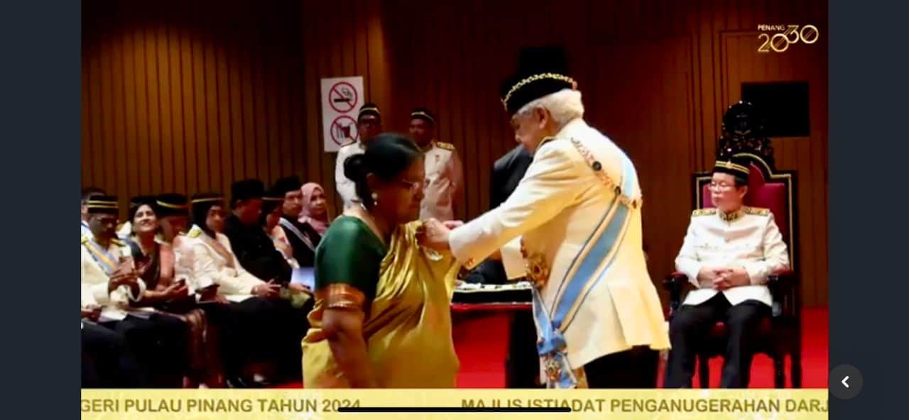 聆听失意者声音逾20年,即将迎来65岁生日的槟州心灵扶助协会(Befrienders Penang)义工桑塔古布默默耕耘得社会认可,获槟州元首敦阿末弗兹授予PJM勋衔。