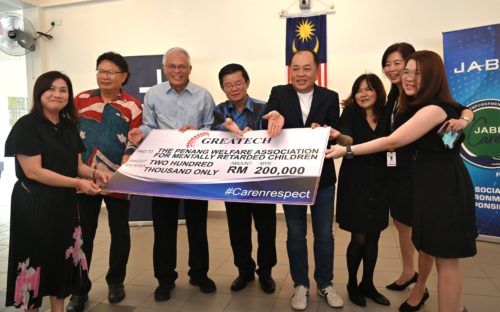 “感谢阁代科技(Greatech Technology)捐款 20万令吉给予槟城迟钝儿童福利协会,以支持特殊教育,在教育方面不让任何孩子落于人后。”