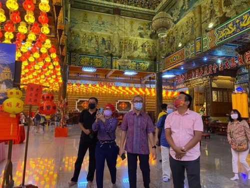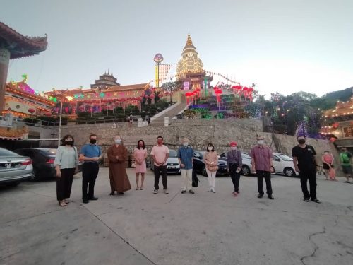 众人到访时,获得极乐寺方丈贤观法师及极乐寺信理员拿督斯里黄得轩与其夫人的接待,双方相见甚欢。随后法师也带领众人参观极乐寺,并仔细讲解极乐寺背景历史及陪伴二位总领事细赏灯海。