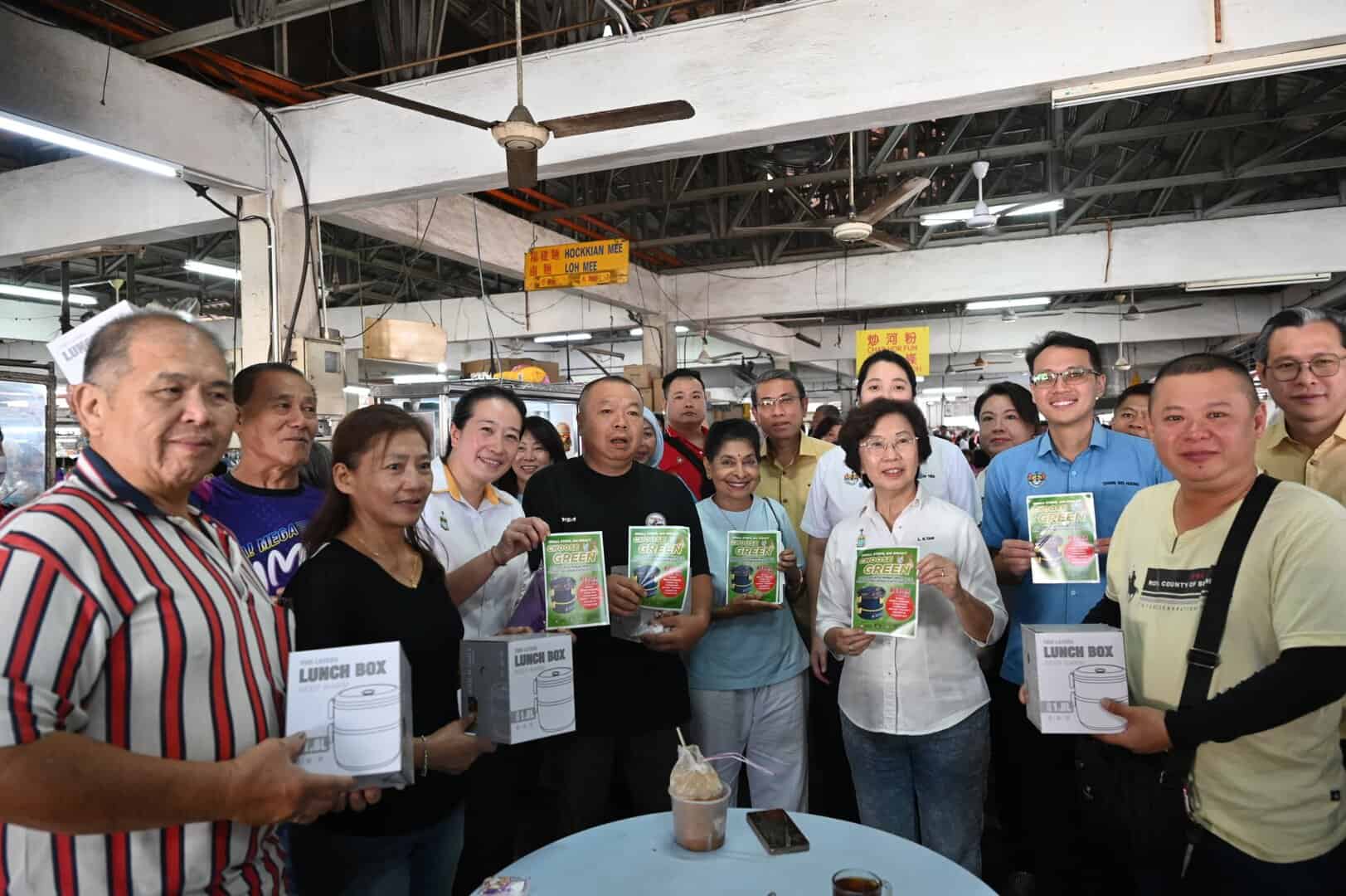 彭心慈透露,此项槟城珍珠夫人协会与市政厅合作的活动,共分发150个食盒予当地66个小贩档口,和前往当地消费的顾客,以鼓励民众拒绝一次性塑料。