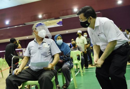 槟州首长曹观友今早连续巡视两所疫苗接种中心,确保接种工作顺畅进行,并表示州政府会竭尽所能,让槟民可尽快接种疫苗。