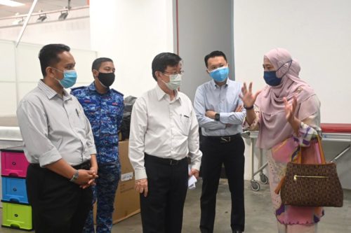 槟州首席部长曹观友今日前往同乐会场地(Tapak Pesta)的东北县疫苗接种中心巡视,并表示希望陆续投入服务的接种中心都能顺畅操作,为更多人接种,迈向群体免疫目标。