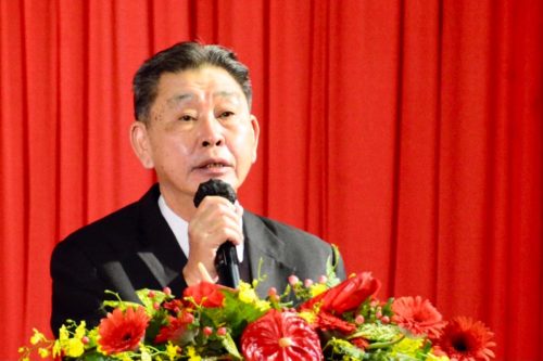 槟华四校董事会总务拿督骆南辉代表华教致词