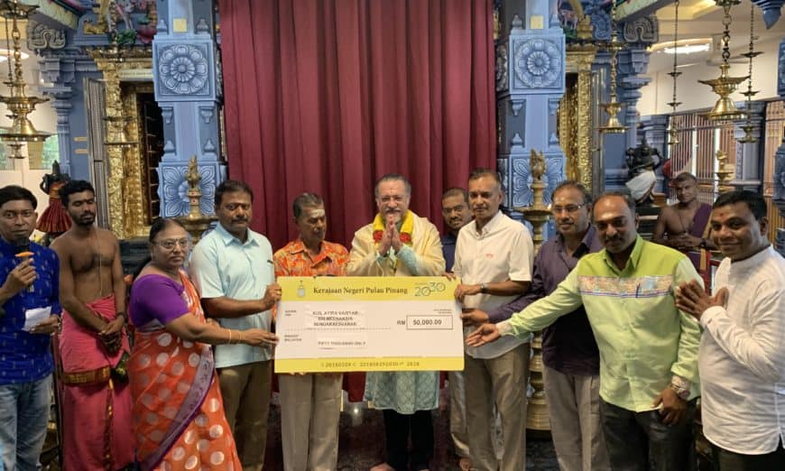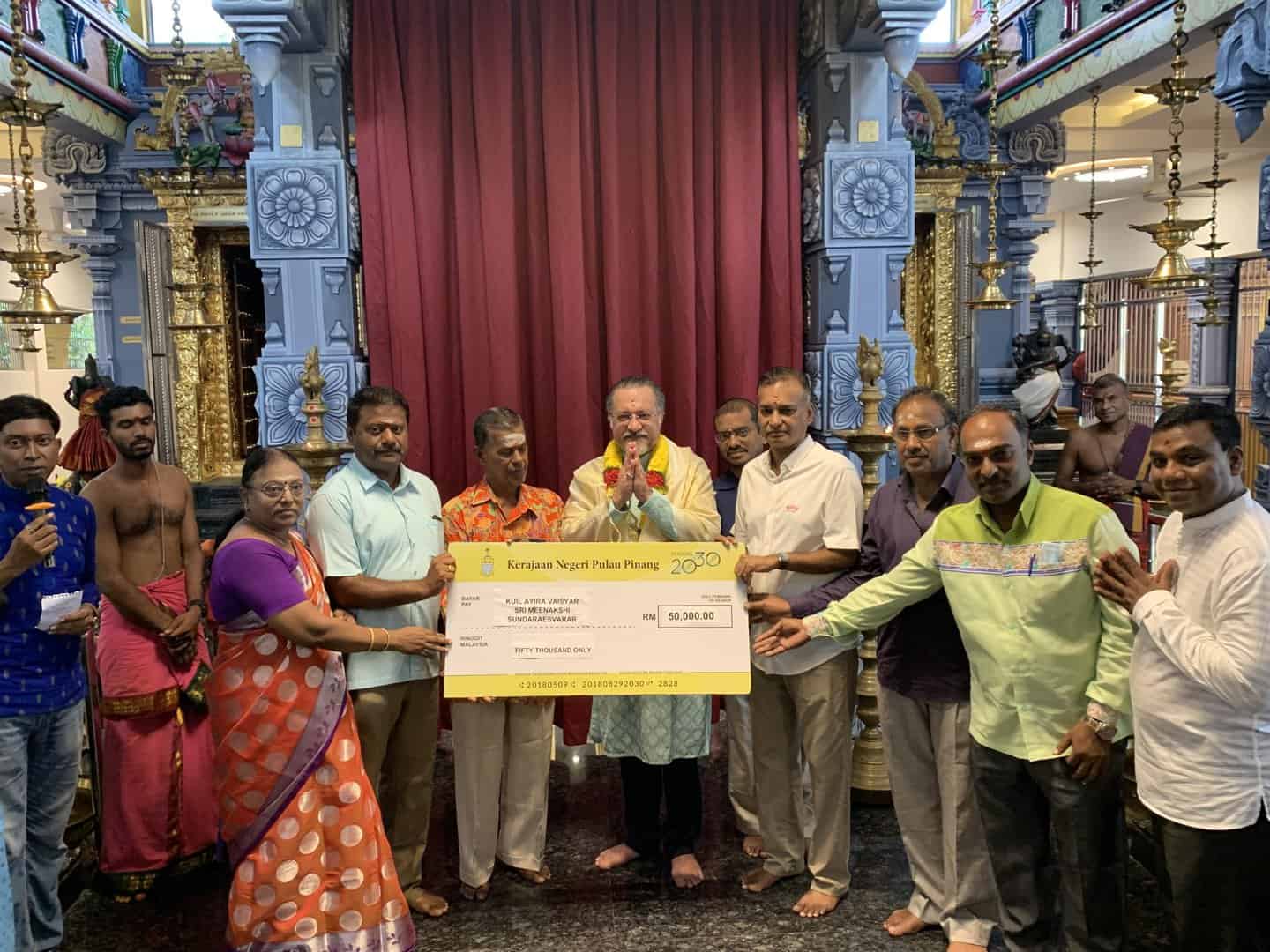 THE Penang government, through its non-Islamic places of worship (RIBI) fund, contributed a total of RM50,000 to the Sri Meenakshi Sundraeswar Temple for maintenance purposes.