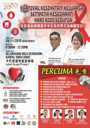 为提升民众健康意识,双溪槟榔区服务中心将于11月24日(星期日)早上8时30分至12时30分,在加巴星道有盖篮球场举办“社区家庭健康嘉年华会以及世界艾滋病醒觉日”活动,现场还有义诊及健康咨询服务,欢迎有兴趣者出席。
