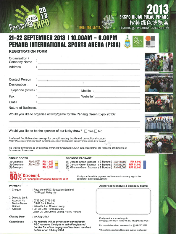 今年9月,槟州绿色机构将在湖内室内体育馆举行2013年槟州绿色博览会。