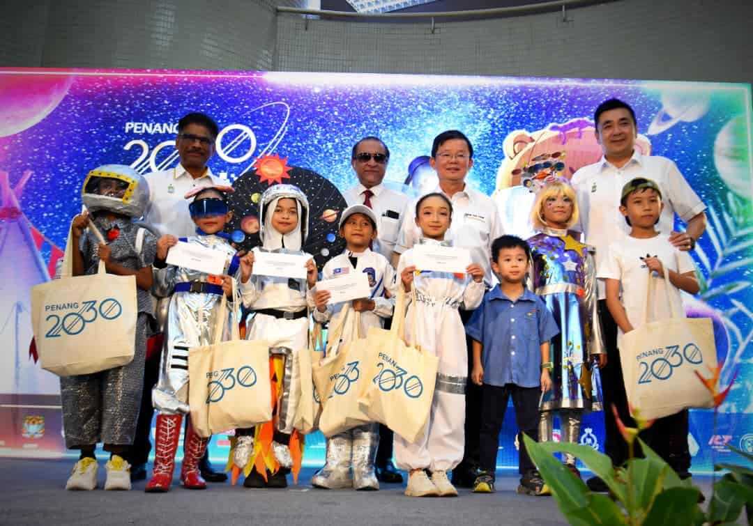 较后时,首长主持颁奖予各杰出政府部门、槟城2030愿景嘉年华太空人服装比赛、绘画比赛优胜者。