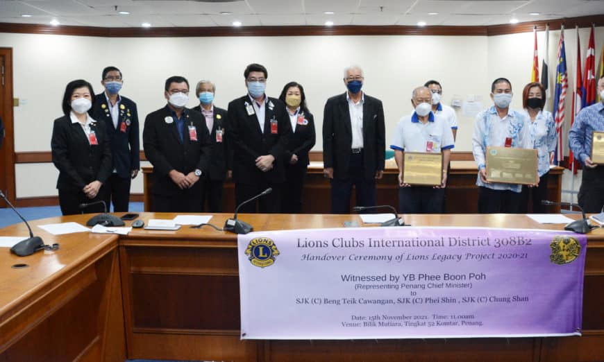 国际狮子会308B2区2020-21发挥服务精神,拨出5万5000令吉,为3所华小提升设备,造福学生。