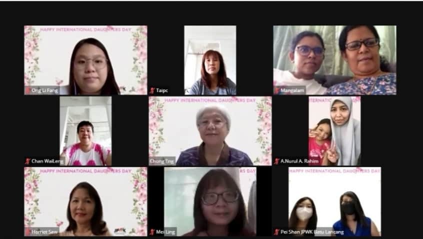 配合国际女儿日,斯里德里玛、亚逸布爹、光大、丹绒武雅、峇都兰樟、峇眼达南及亚依淡区JPWK联办线上活动,获得85对母女参与。