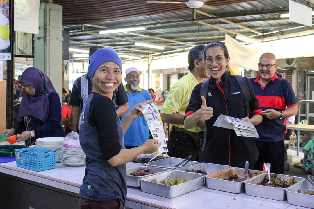 Terdahulu, Syerleena meluangkan masa kira-kira sejam mengedarkan kalendar tahun baru di Pasar Awam Taman Tun Sardon.
