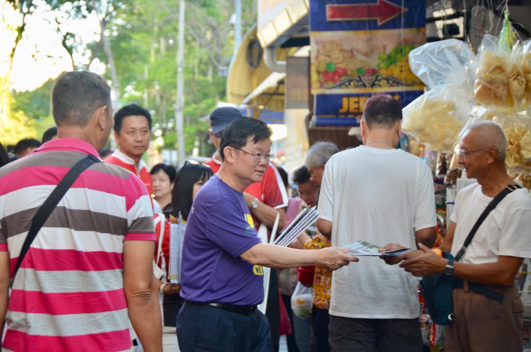 MARKET traders and shoppers at Chowrasta Bazaar received a pleasant surprise when Chief Minister Chow Kon Yeow made an appearance this morning.