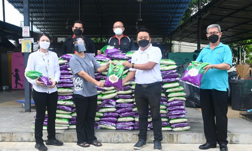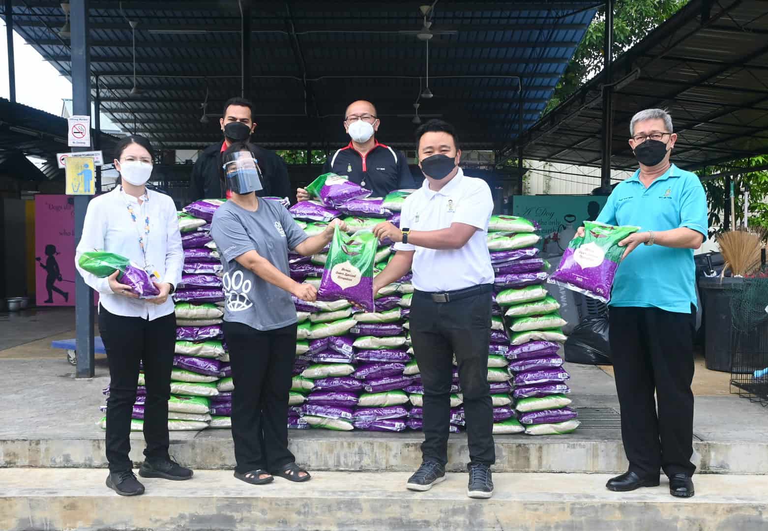 AIR Itam assemblyman Joseph Ng handed over a total of 150 packets of rice to the International Aid for the Protection and Welfare of Animals (IAPWA) Penang today.