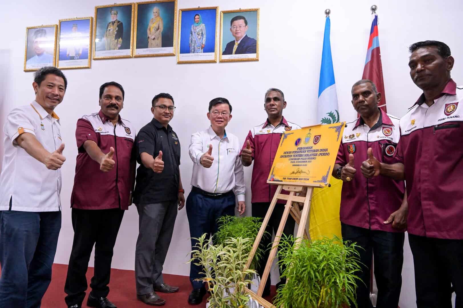 Penang Chief Minister Chow Kon Yeow said this at the opening of the Malaysia Armed Forces Indian Veteran Association (Perim) Penang branch hall at Bukit Juru today, describing the ceremony as more than a symbolic event as it reflected sincere appreciation for the lifelong contributions of former servicemen, particularly those from the Indian community.