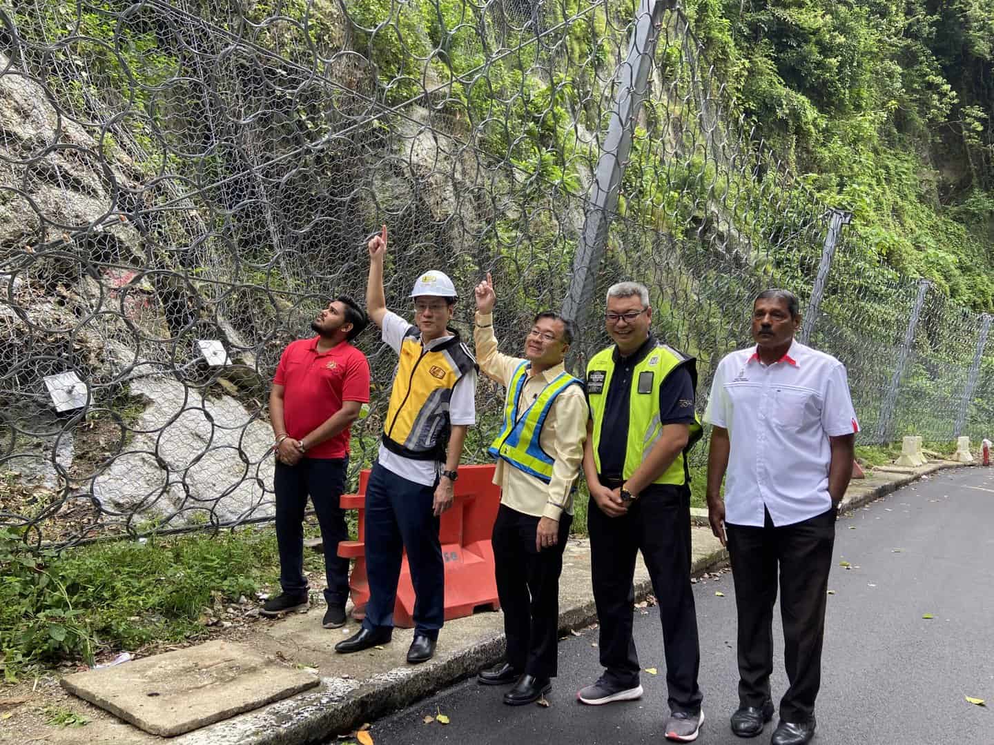 “Antara skop kerja yang dilakukan termasuklah rock bolting, soil nailing, pemasangan rockfall flexible barriers, rockfall netting, baik pulih sistem perparitan dan penurapan jalan serta pemasangan lampu di jajaran sepanjang 500 meter,” katanya ketika melawat lokasi di hadapan Grand View Heights di sini pagi tadi.