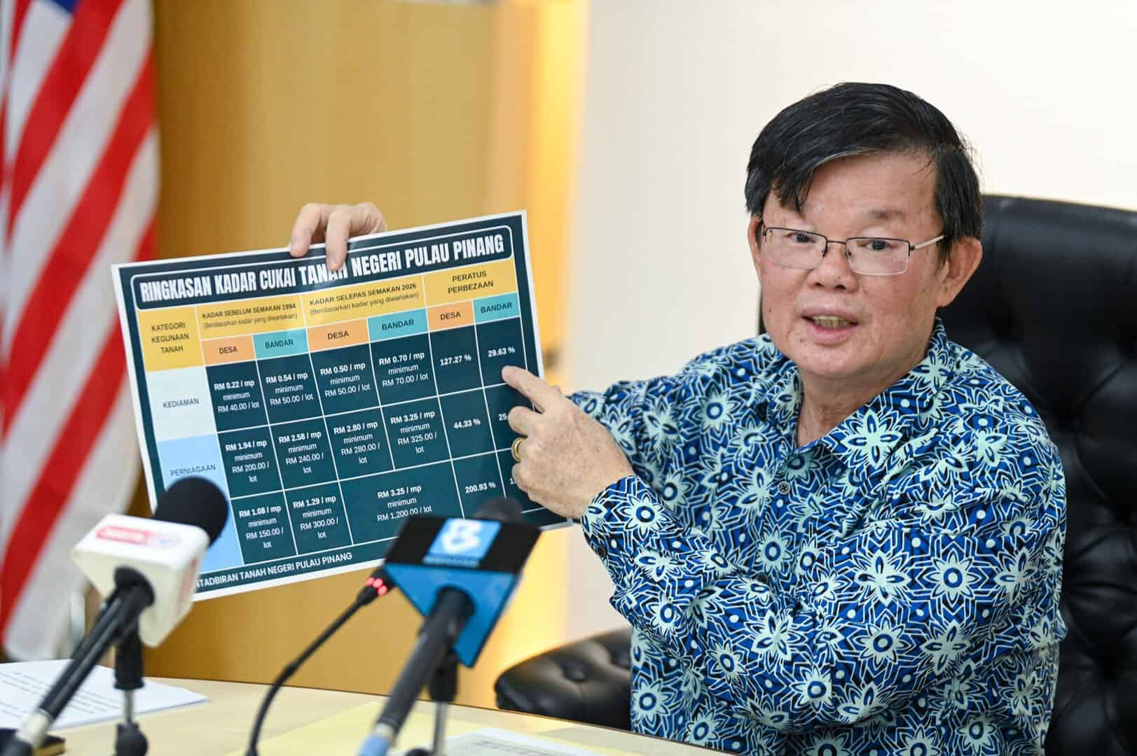 GEORGE TOWN — Kerajaan Negeri membenarkan pemilik tanah yang menghadapi kekangan kewangan untuk membuat bayaran Cukai Tanah 2026 secara ansuran sebagai antara langkah mengurangkan beban susulan semakan kadar cukai tanah di negeri ini.