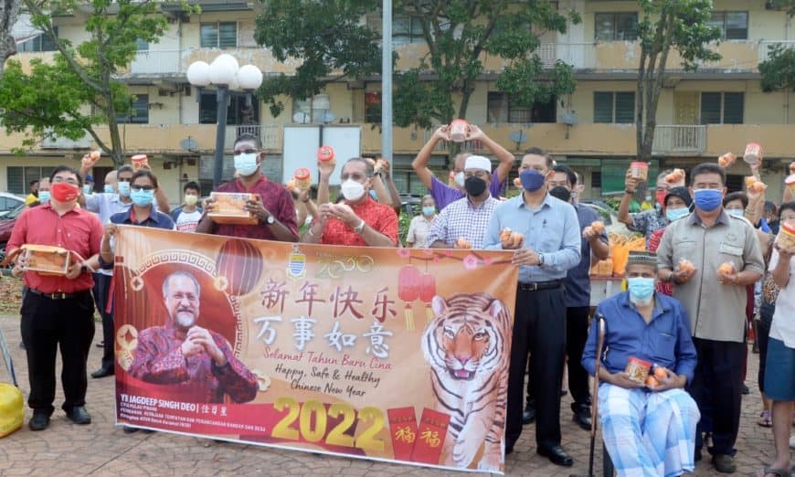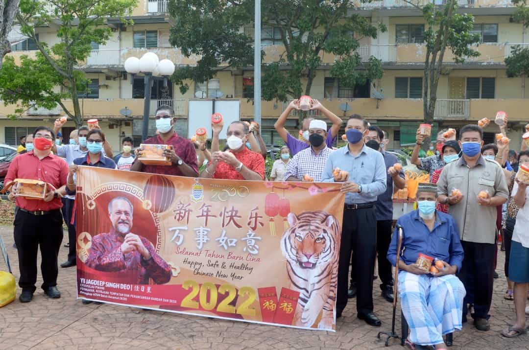 After the press conference, Jagdeep and Rayer distributed the Chinese New Year (CNY) goodies to the residents at the Taman Free School Flats.