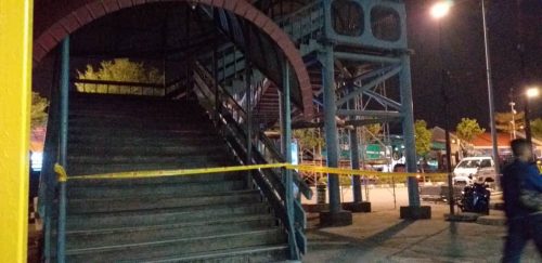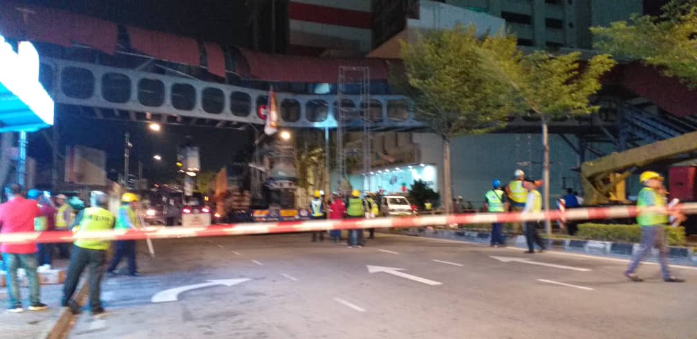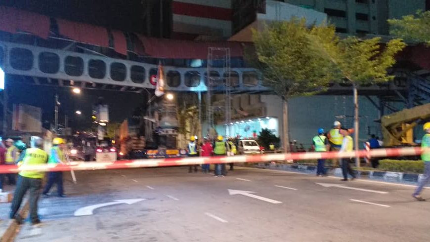 It was reported that a crane that was transported by a trailer had crashed into the overhead pedestrian bridge at about 4pm today (Feb 5).