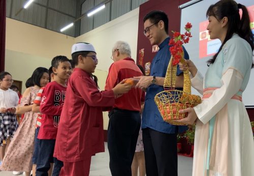 Hadir sama, Guru Besar bagi SRJK Cina Poay Wah, Lian Poh Lai; Pengerusi Lembaga Pengurusan Sekolah, Teh Lean Hee serta Pengerusi Persatuan Ibu Bapa dan Guru (PIBG), Wee Chong Yue.