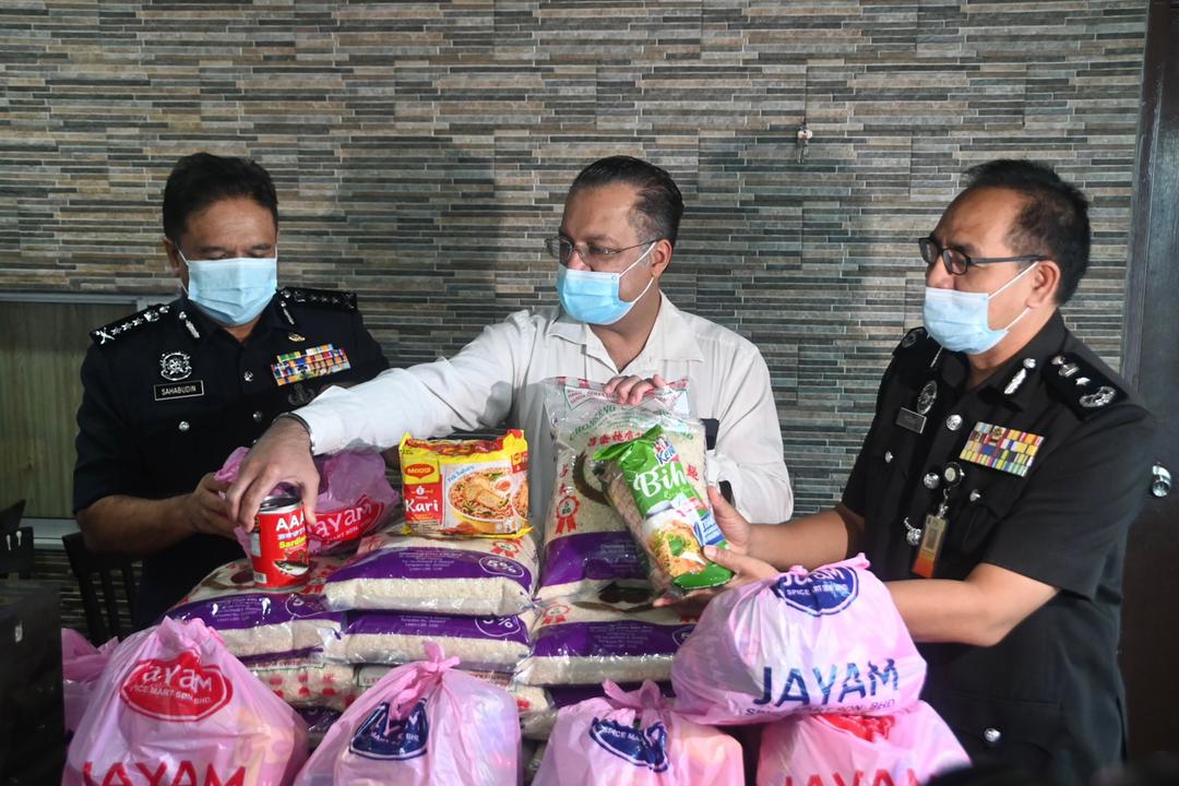 Pada majlis sama, Jagdeep turut menyampaikan sejumlah sumbangan dalam bentuk pek bekalan makanan kepada anggota barisan utama sempena menyambut hari lebaran.