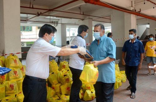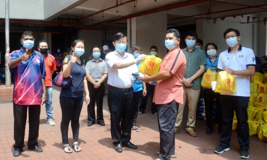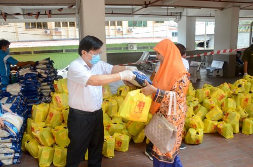 Terdahulu, Kon Yeow meluangkan masa kira-kira sejam menyerahkan sumbangan barangan makanan kepada penduduk di Kompleks Jalan Kedah.