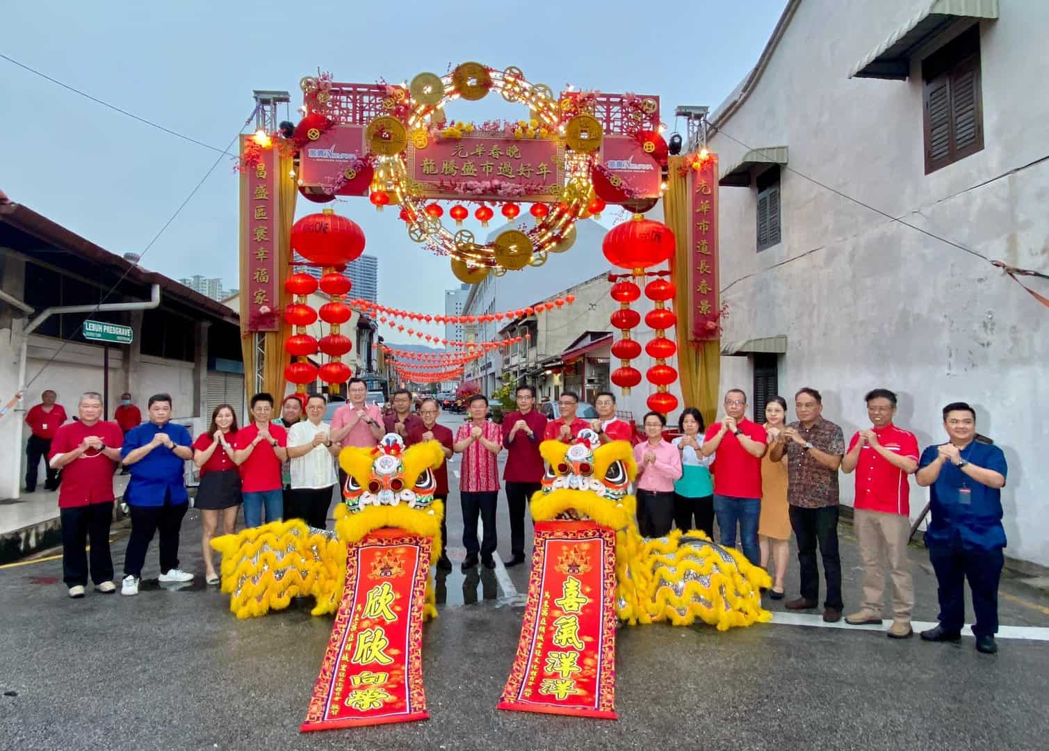 The lively event featured lion dances and music, with the leaders walking to the adorned street entrance, signaling its readiness for the Chinese New Year festivities.