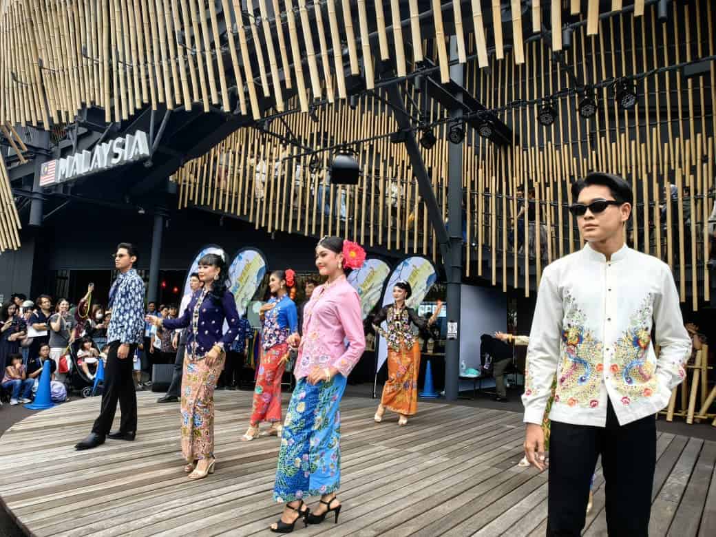 Setiap petang, pentas Pavilion Malaysia diserikan dengan pertunjukan fesyen kebaya dan batik yang menjadi antara segmen paling dinantikan pengunjung.