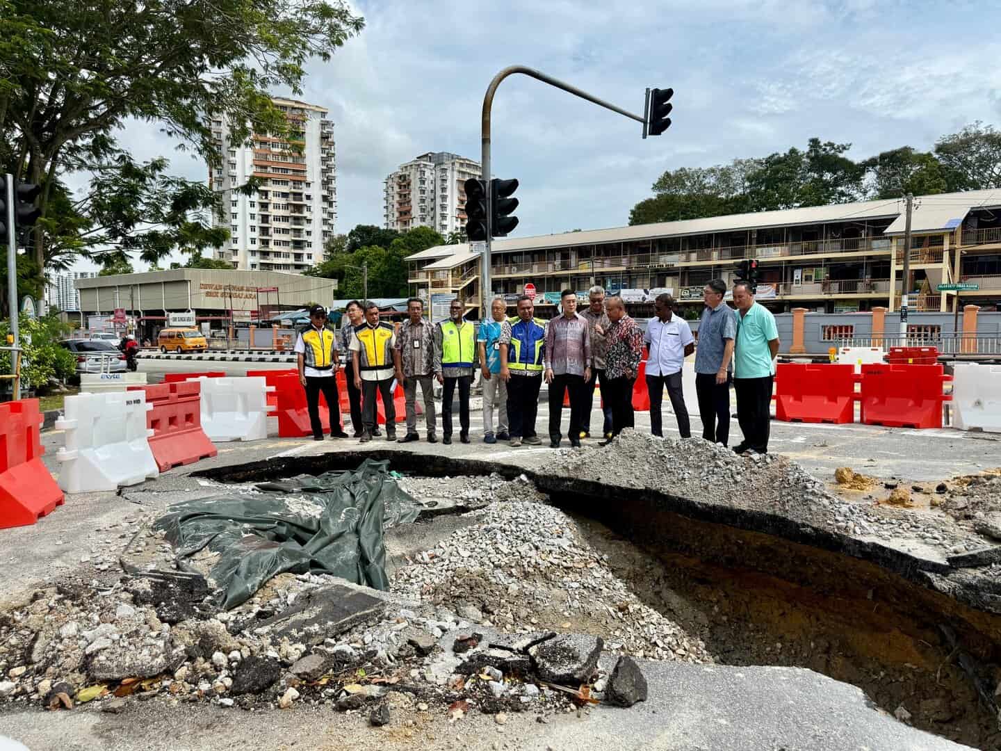 BAYAN LEPAS – Lubang benam yang dikesan di Jalan Dato’ Ismail Hashim, Bayan Lepas pada 4 November 2025 lalu dipercayai berpunca daripada kebocoran paip bawah tanah.