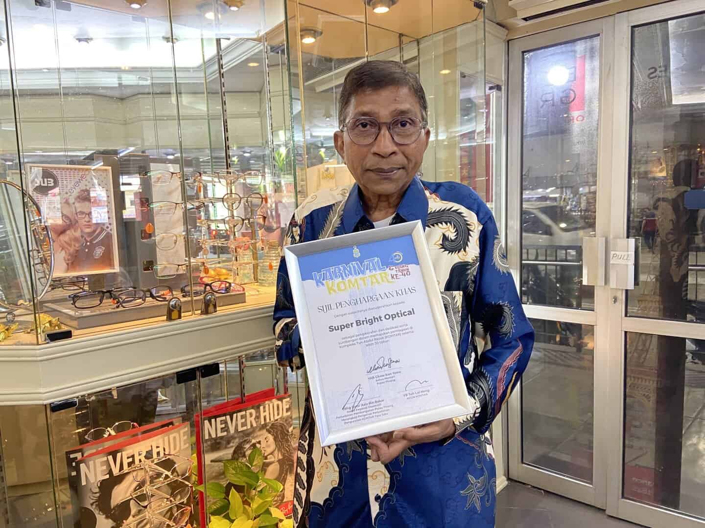 BERPENGALAMAN sejak tahun 1971 dalam bidang optometri, pemilik Super Bright Watch & Optical Co., NICKALAS KULANDIASAMY, merupakan antara penyewa terawal di bangunan Kompleks Tun Abdul Razak (Komtar) yang kini berusia hampir 40 tahun.