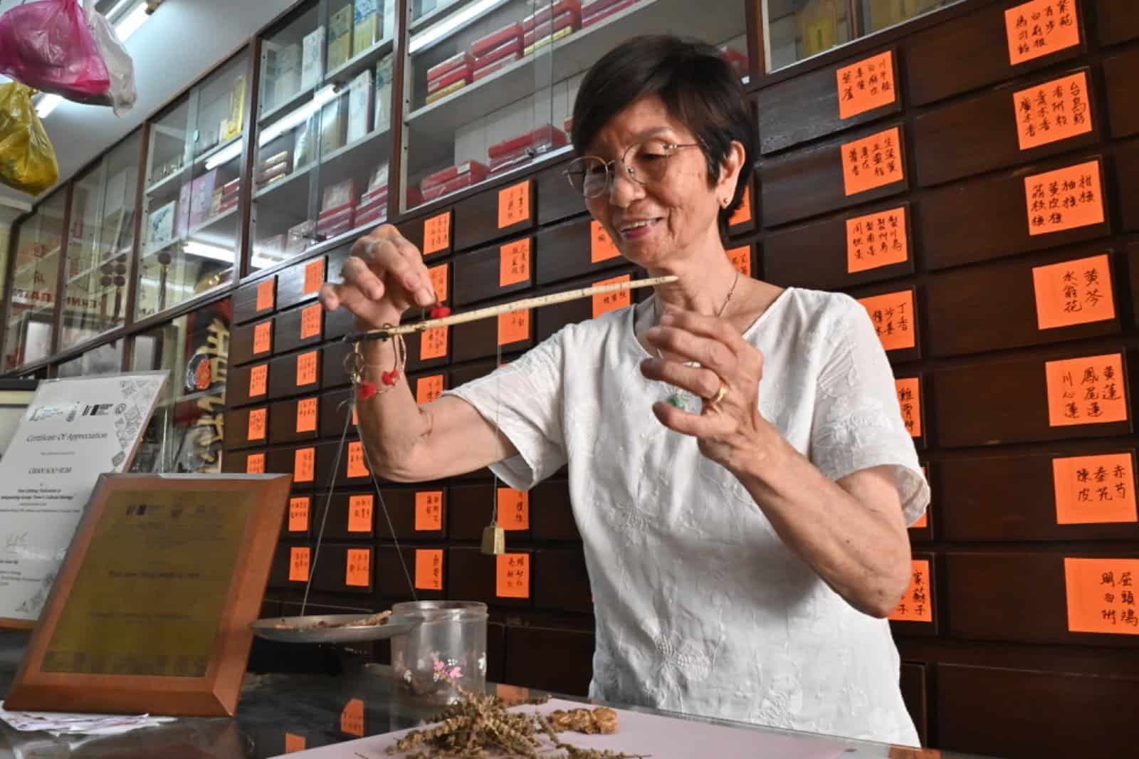 Poh Aun Tong Medical Hall on Campbell Street, established by the late physician Chan Chooi Foo, is now run by his 75-year-old daughter, Chan Soo Sum, who has been serving patients for more than five decades.