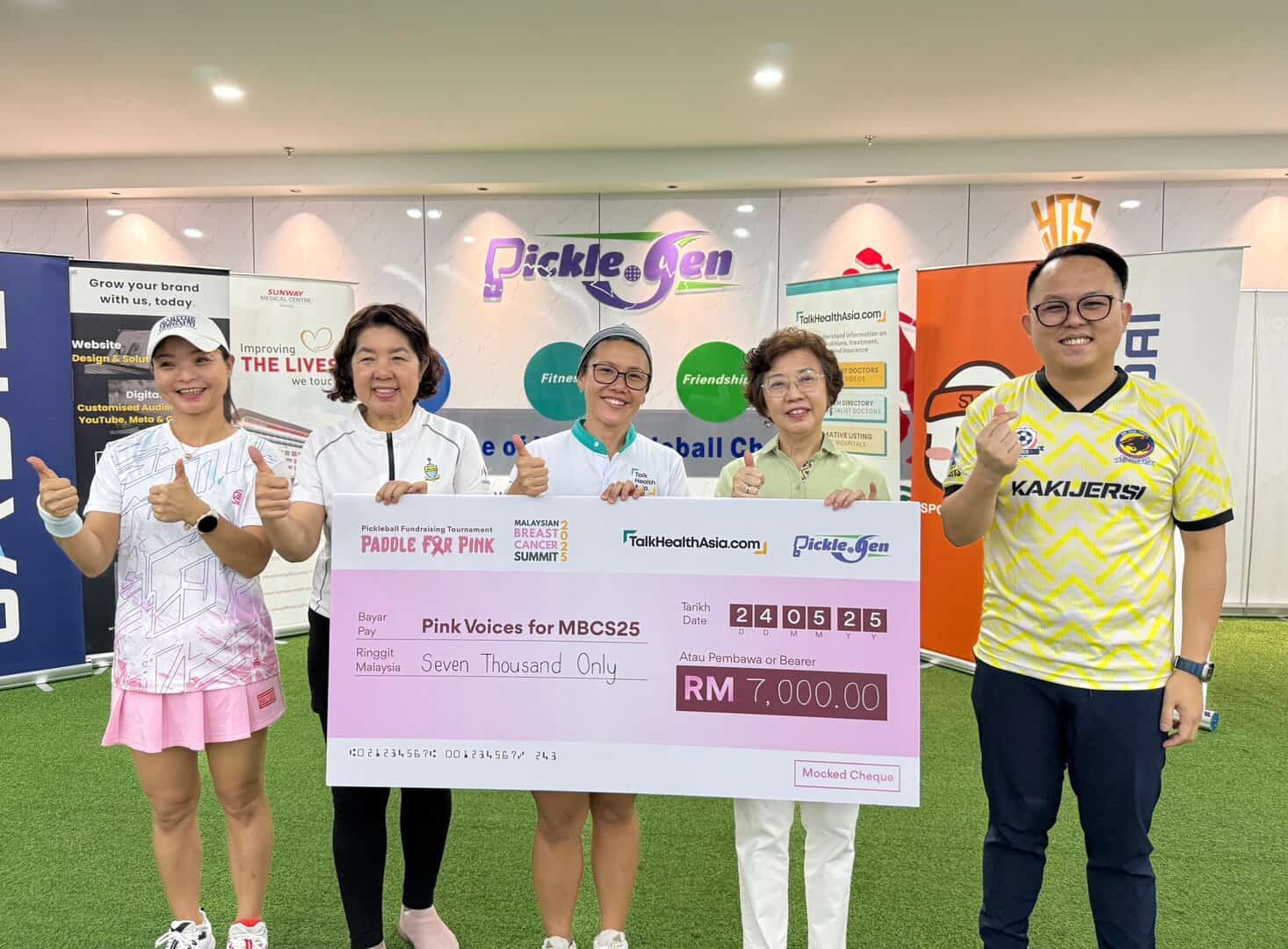 PANTAI JEREJAK – Sejumlah RM7,000 dana yang dikutip melalui penganjuran pertandingan pickleball bagi membantu pesakit-pesakit kanser yang kurang berkemampuan menghadiri Malaysian Breast Cancer Summit 2025 di Kuala Lumpur Ogos ini.