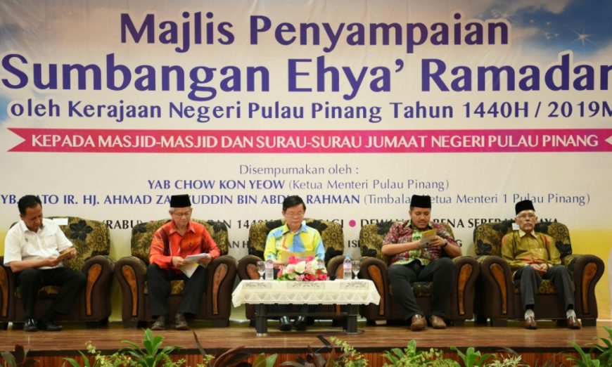 Menjelang Ramadan tidak lama lagi, Ketua Menteri, Y.A.B. Tuan Chow Kon Yeow berkata, Kerajaan Negeri Pakatan Harapan Pulau Pinang sekali lagi menyalurkan RM240,000 kepada 231 masjid dan ‘surau Jumaat’.