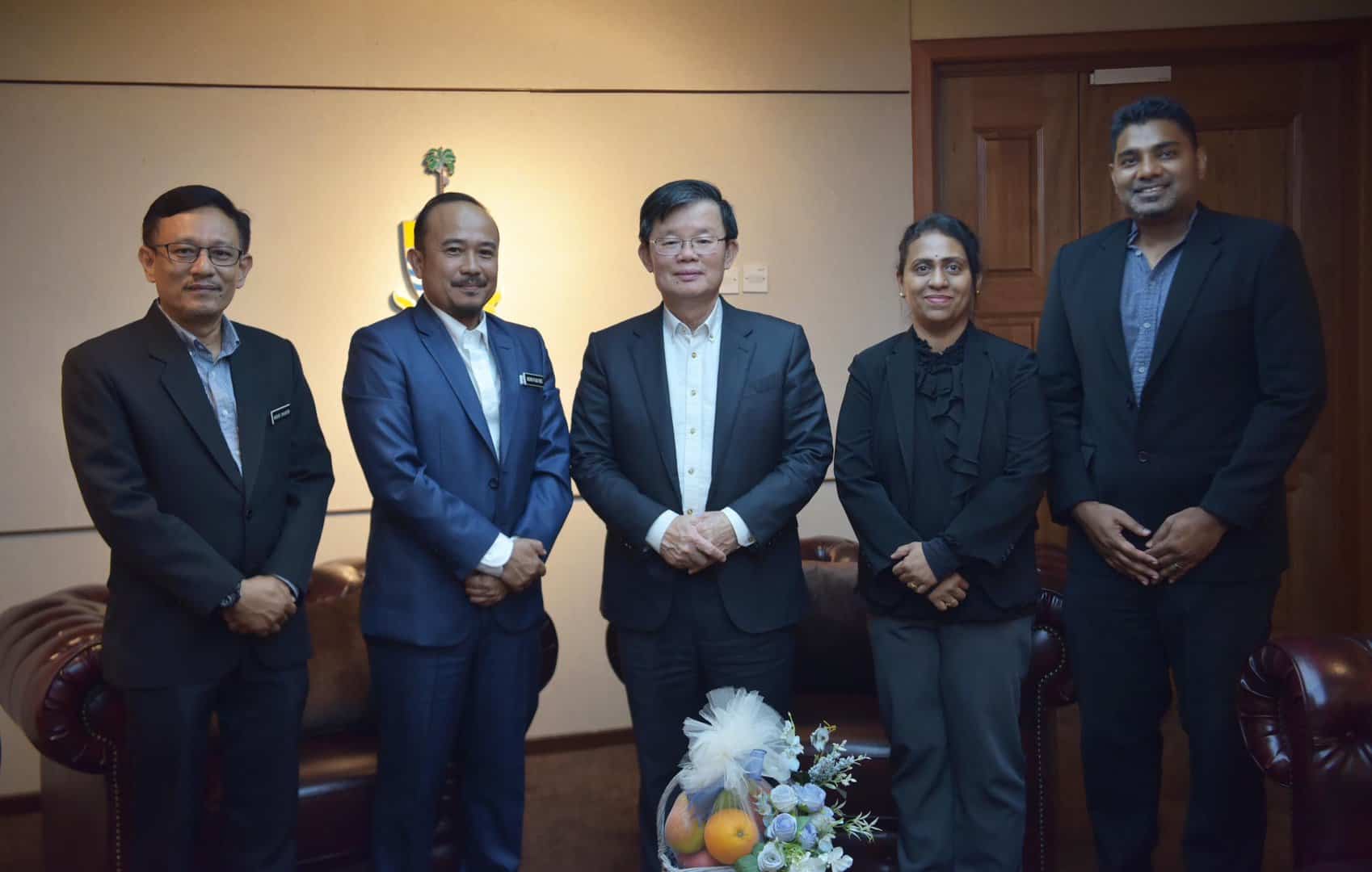 GEORGE TOWN – Ketua Menteri, Y.A.B. Tuan Chow Kon Yeow menerima kunjungan hormat perkenalan Pengarah Suruhanjaya Pencegahan Rasuah (SPRM) Pulau Pinang yang baharu, Mohd. Fuad Bee Basrah sebentar tadi.