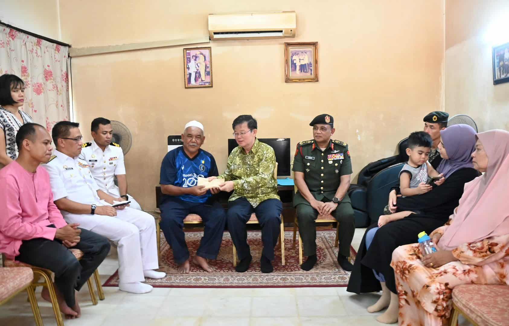 PANTAI JEREJAK – Ketua Menteri, Y.A.B. Tuan Chow Kon Yeow menziarahi keluarga pegawai Tentera Laut Diraja Malaysia (TLDM), Allahyarham Komander Muhammad Firdaus Ramli yang terkorban dalam tragedi helikopter terhempas di Pangkalan Tentera Laut Diraja Malaysia (TLDM) Lumut, Perak Selasa lalu.