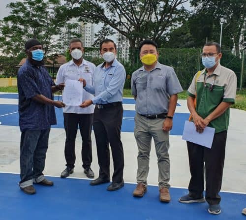 Soon later handed an official letter to Kampong Melayu MPKK chairman Abdul Aziz Buhari in a symbolic handover ceremony of the sepak takraw courts. Others present were Bukit Gelugor MP Ramkarpal Singh, Air Itam assemblyman Joseph Ng and Air Itam district penghulu Nasrizal Nasib.