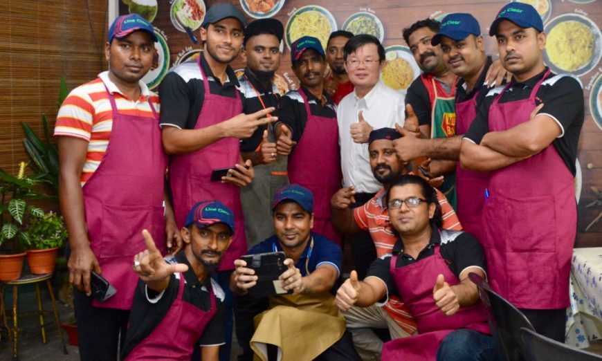 GEORGE TOWN – “Line Clear!” Itu sorakan biasa kakitangan nasi kandar warisan terkenal Pulau Pinang ketika menyambut kunjungan Ketua Menteri, Y.A.B. Tuan Chow Kon Yeow dekat Jalan Penang lewat petang tadi di sini.