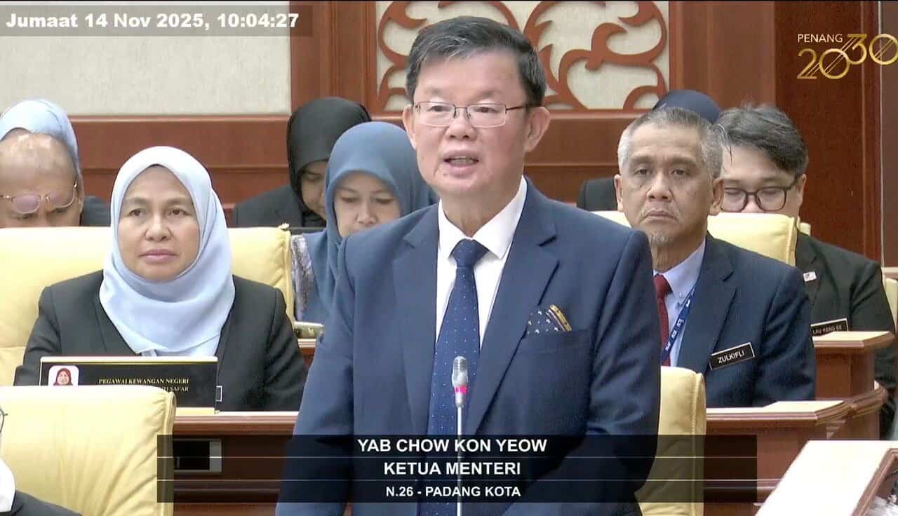 Ketua Menteri, Y.A.B. Tuan Chow Kon Yeow berkata demikian sebagai menjawab soalan tambahan daripada Ahli Dewan Undangan Negeri (ADUN) Bukit Tengah, Gooi Hsiao-Leung, semasa Mesyuarat Kedua Penggal Ketiga Dewan Undangan Negeri Pulau Pinang Ke-15 di sini pada 14 November 2025.