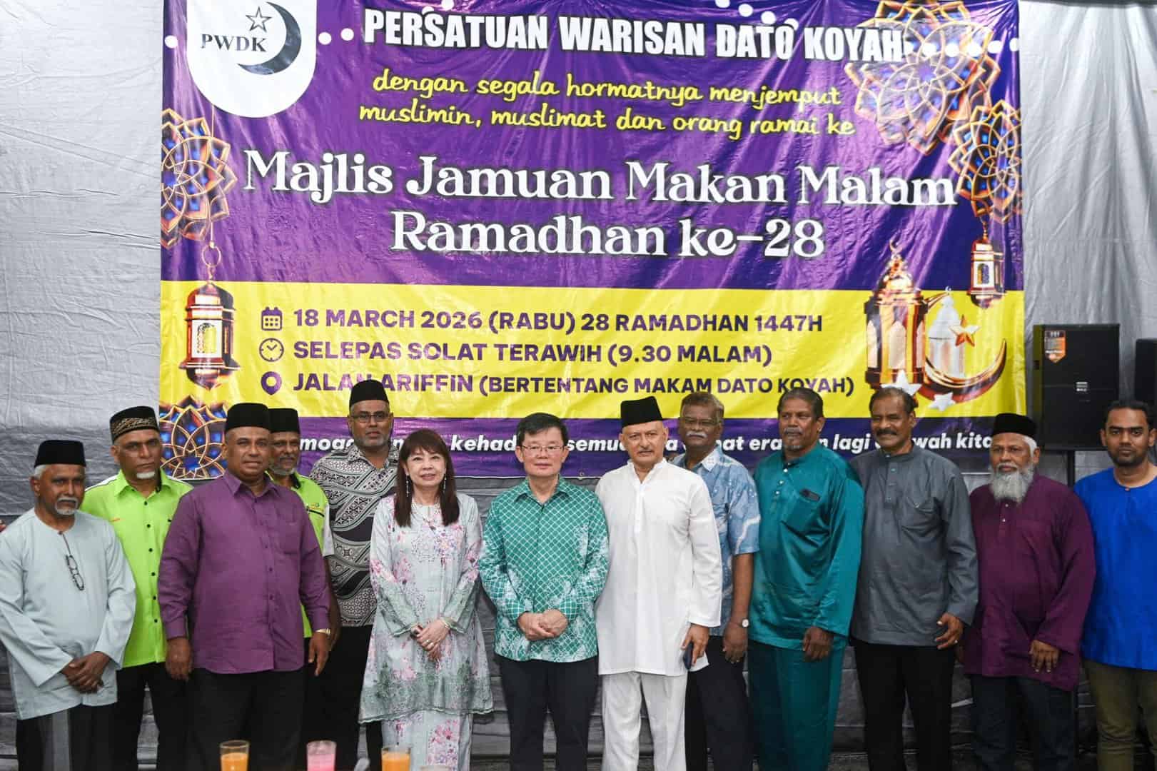 Turut hadir, Presiden Persatuan Warisan Dato’ Koyah (PWDK), Dr. Abdul Rashid S.M. Masooth; Setiausaha Agung Persekutuan Pertubuhan India Muslim Malaysia (PERMIM) merangkap Setiausaha Kehormat PWDK, Adam Malik Shahul Hamid; Presiden Liga Muslim Pulau Pinang, Dato’ Seri Haja Najmudeen Kader; Presiden Central Muslim Society, Mohd. Hasan Othuman; Presiden Gabungan Presiden India Muslim Pulau Pinang (GAPEIM), Hamid Sultan Jabbar dan Pengerusi Jawatankuasa Majlis Jamuan Makan Malam Ramadan Ke-28, Mohd. Ismail Abdul Rahman.