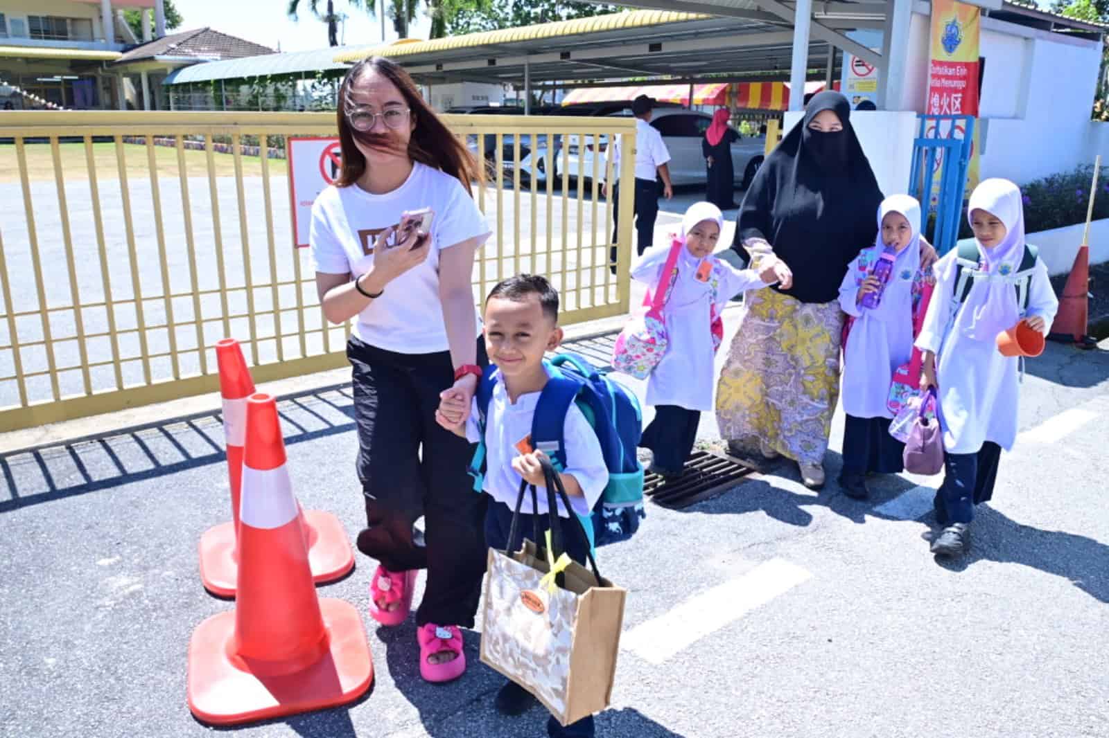 Parent Nurkhalidah Mohd Alladin, 34, said her son, Thaqif Eshan Rostam, was excited on his first day of school and woke up as early as 6.30am. The family lives in Bukit Kecil, Sungai Pinang, not far from the school.