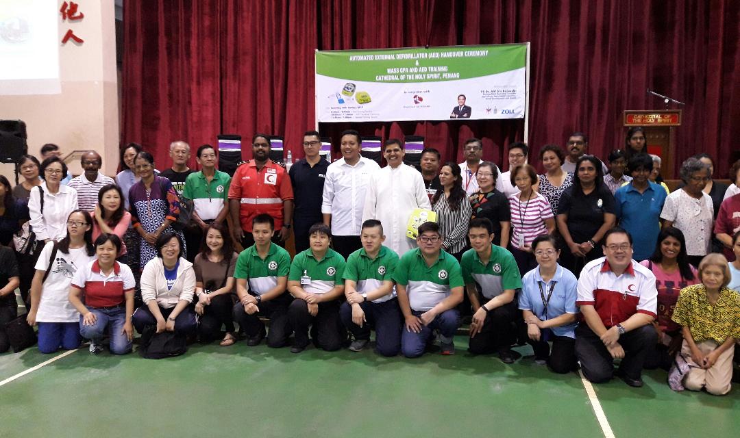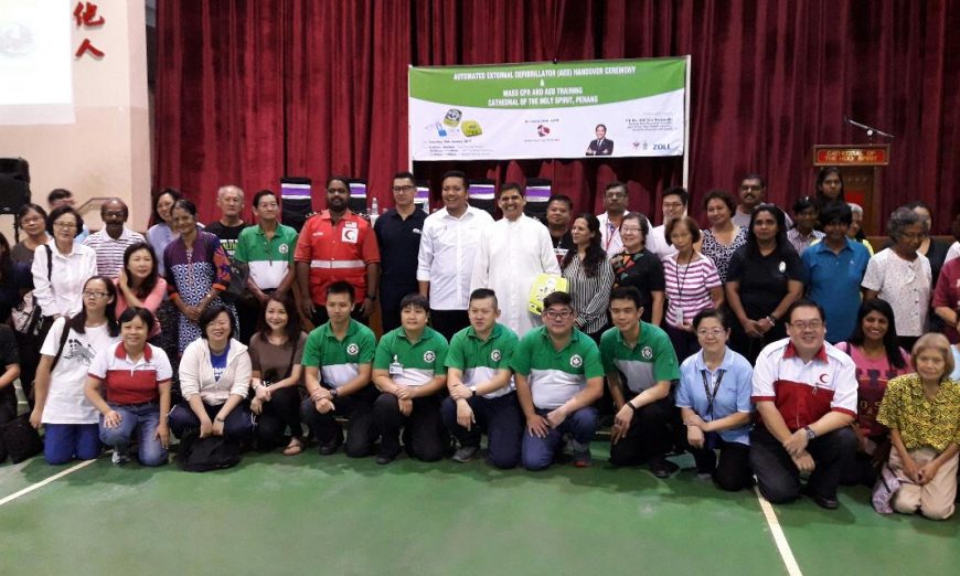 “We’ve a small window of opportunity, only a few minutes, to try to revive a victim. In Malaysia, there is less than one percent survival rate. Hence, such skills to help the victims must be learned,” Dr Afif said during the launching of the AED handover ceremony and a mass CPR & AED training at the hall of the Cathedral of the Holy Spirit in Island Park today.