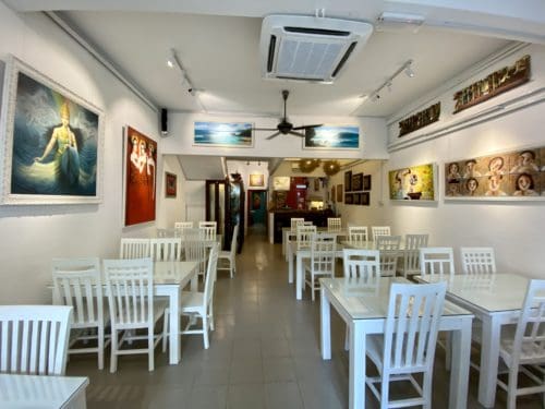 在加巴星道营业时,Nona Bali的巴厘岛式装潢为人所津津乐道,搬到玻璃池滑后,也充满巴厘风味。店里的图画、各类艺术品、摆设品,都是店家从巴厘岛或印尼其他地方带回来,如果顾客喜欢,可跟店家商量,购买心头好。