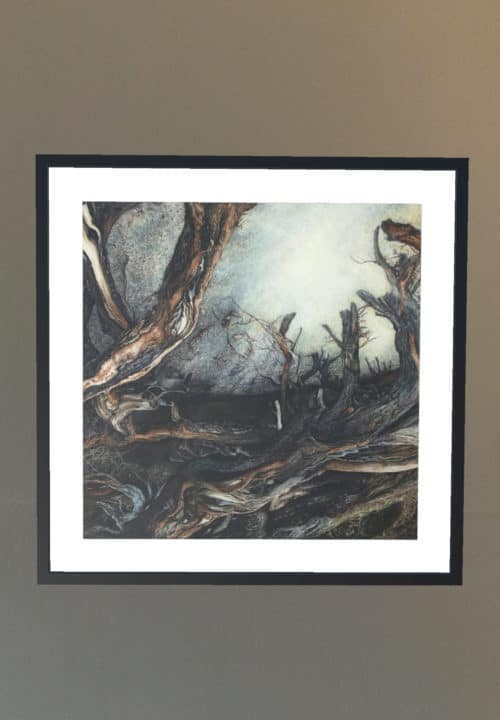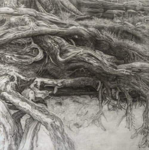 Citing an example of duality, he showed the artworks of Sharon Kow, an established coloured pencil artist. Her two pieces, titled “Atemporality and Sempiternity”, are coloured pencil works of tree roots to reflect that living things will die, and disintegrate but will also regenerate.