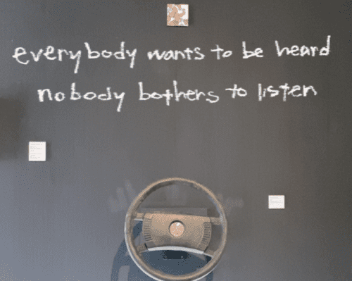 Perhaps the most special exhibit, an old steering wheel of a Mercedes car, comes from well-known Penang artist bibichun.