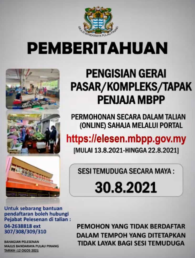 “Those who are interested can apply via our portal (https://elesen.mbpp.gov.my) from tomorrow.