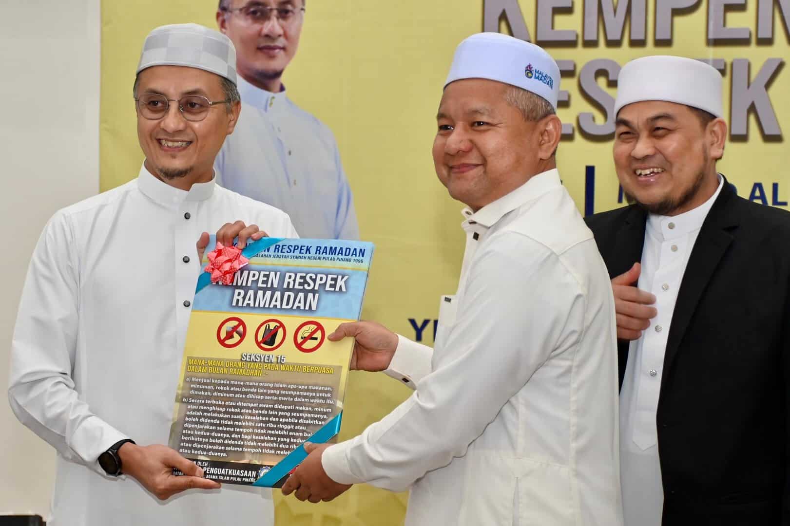 “Selain penguatkuasaan, program advokasi ini turut dilaksanakan dengan edaran poster kempen ke semua masjid di Pulau Pinang; slot tazkirah ringkas sebelum solat Jumaat di Masjid Negeri dan masjid daerah serta ceramah oleh pegawai penguatkuasa agama,” ujarnya pada Majlis Pelancaran Kempen Respek Ramadan di Masjid Al-Bukhary Sungai Pinang di sini, semalam.