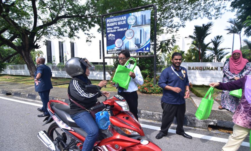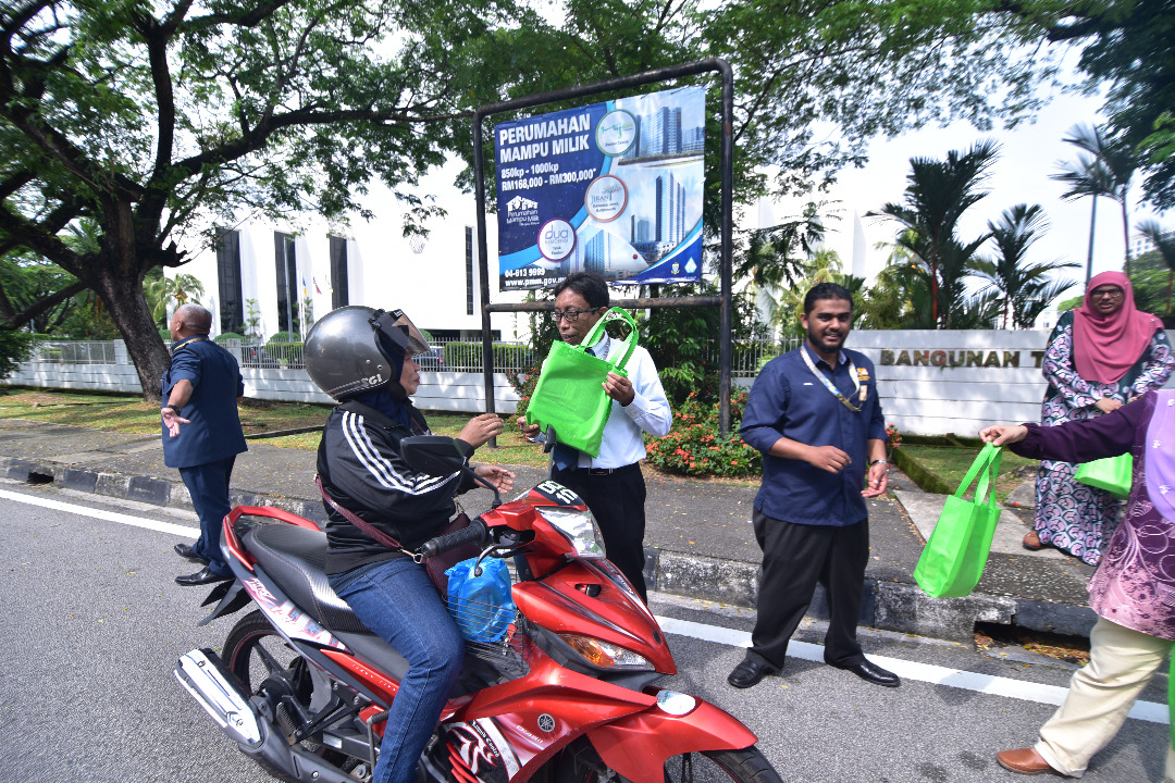 BAYAN BARU – Perbadanan Pembangunan Pulau Pinang (PDC) mengagihkan 500 pek bubur lambuk kepada orang awam bersempena bulan Ramadan di sekitar Bangunan Tun Dr Lim Chong Eu, di sini, semalam.