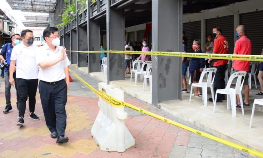 GEORGE TOWN – Ketua Menteri, Y.A.B. Tuan Chow Kon Yeow menyatakan bahawa pentadbirannya berharap pembiayaan program saringan massa COVID-19 terhadap kira-kira 600 penjaja kecil di Pasar Awam Chowrasta dan Pasar Awam Lebuh Cecil dapat membantu golongan berkenaan kembali berniaga dalam keadaan sihat serta selamat.