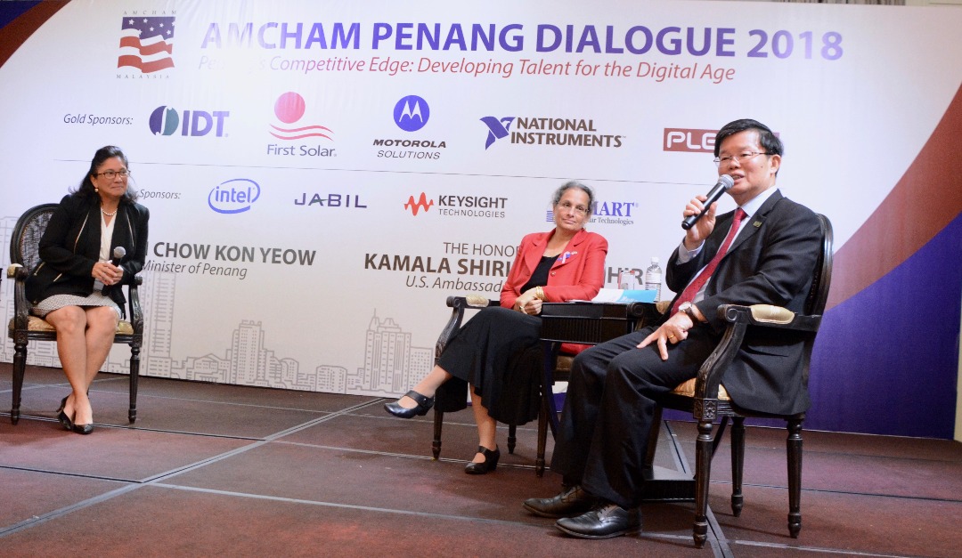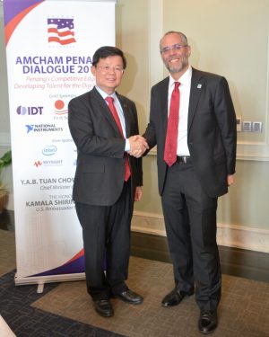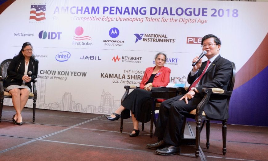 “Penang is and will continue to be a key component of the US business in Malaysia. This is a new Malaysia and we look forward to working with you and the team for the coming years,” he told Chief Minister Chow Kon Yeow in his speech during the ‘Penang Dialogue 2018 – Penang’s Competitive Edge: Developing Talent for the Digital Age’ event at E&O Hotel in Farquhar Street today.